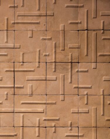 - Chaque pièce est ensuite séchée à l’air libre avant d’être cuite à très haute température, révélant des teintes chaudes et profondes — du sable clair au rouge brique, du rosé au brun Sienne. Cette cuisson donne naissance à un matériau unique, marqué par de légères variations de couleur et de texture.