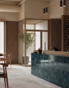 Les carreaux imitant les matériaux naturels, les formats XXL, les motifs géométriques et les couleurs audacieuses sont en vogue. Les
